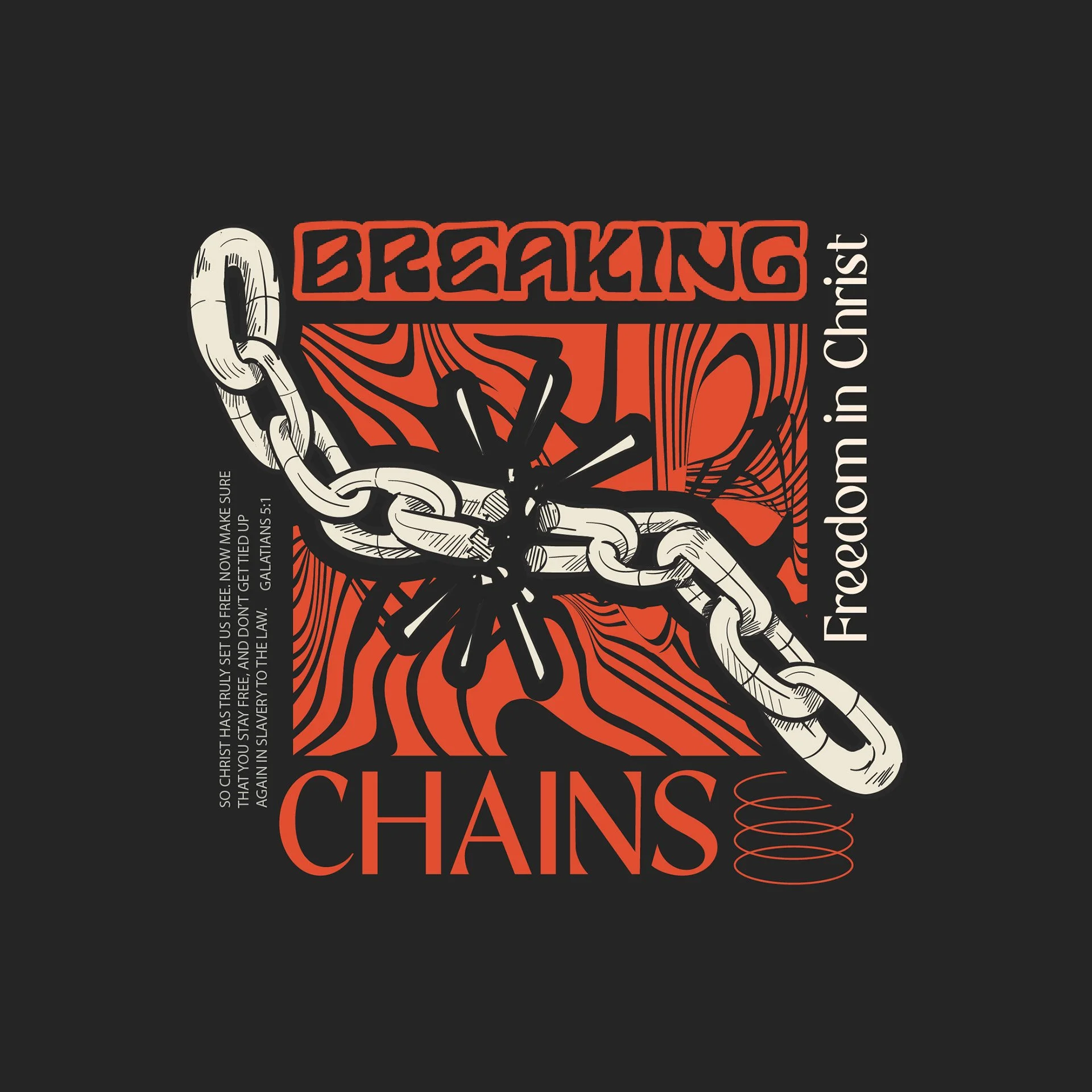 T-shirt graphic concept for the “Breaking Chains” theme to support a message on freedom in Christ.